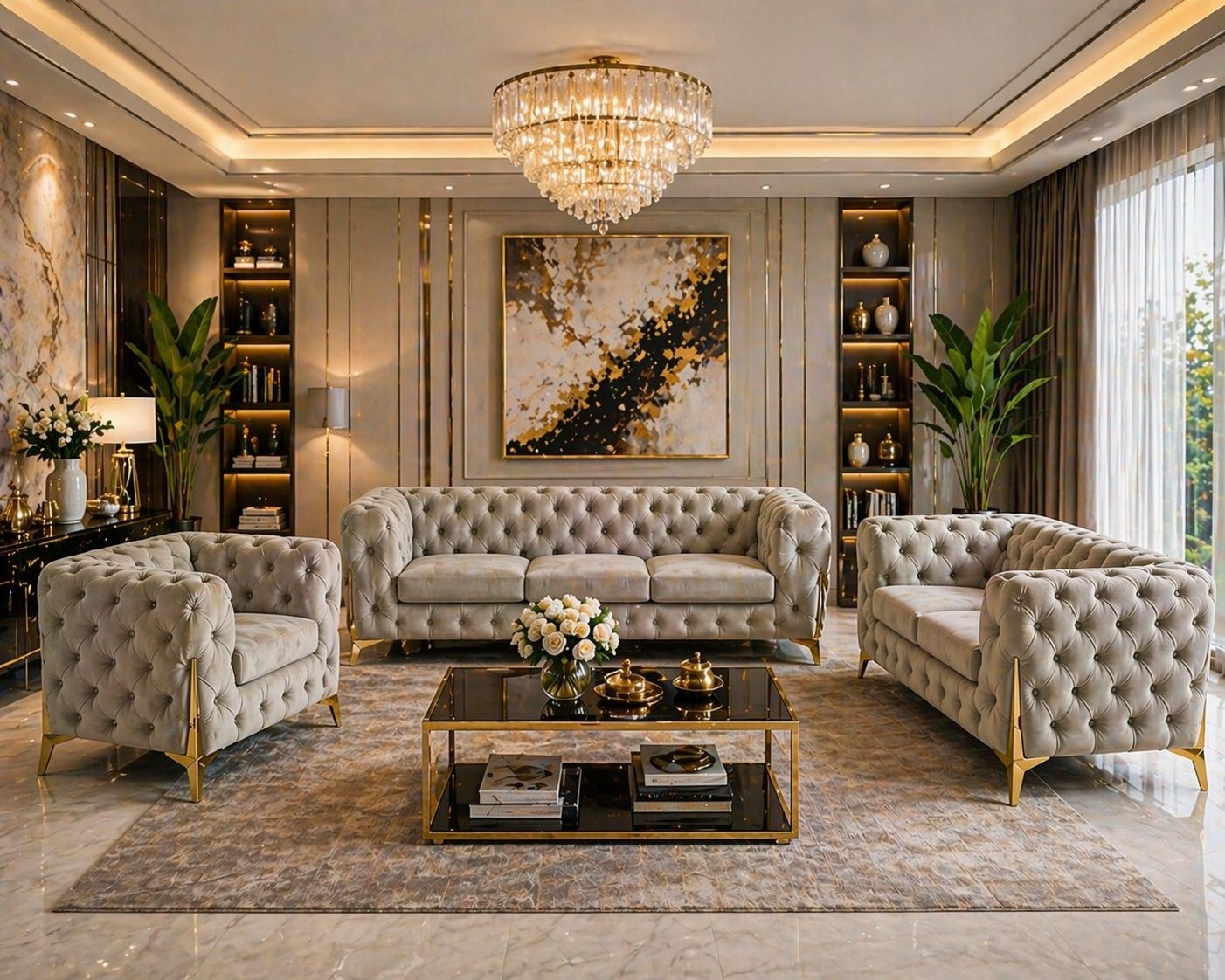 Complete 6-Seater Suite: Includes a spacious 3-seater, a cozy 2-seater, and a premium armchair for a total living room transformation.
