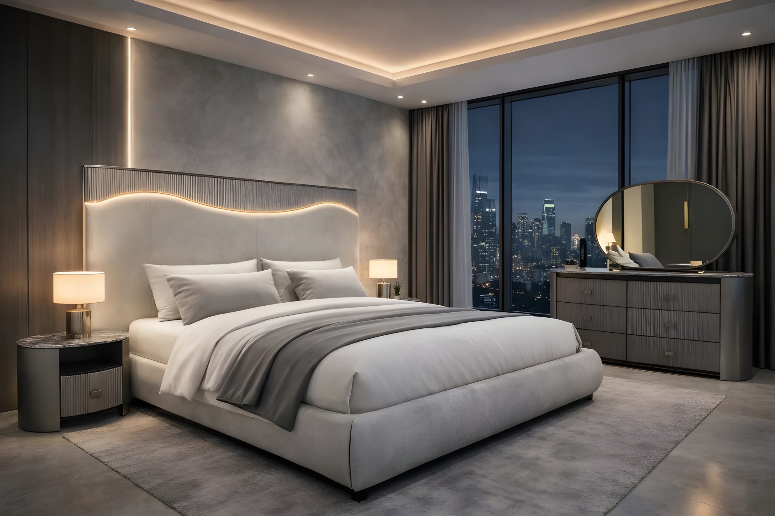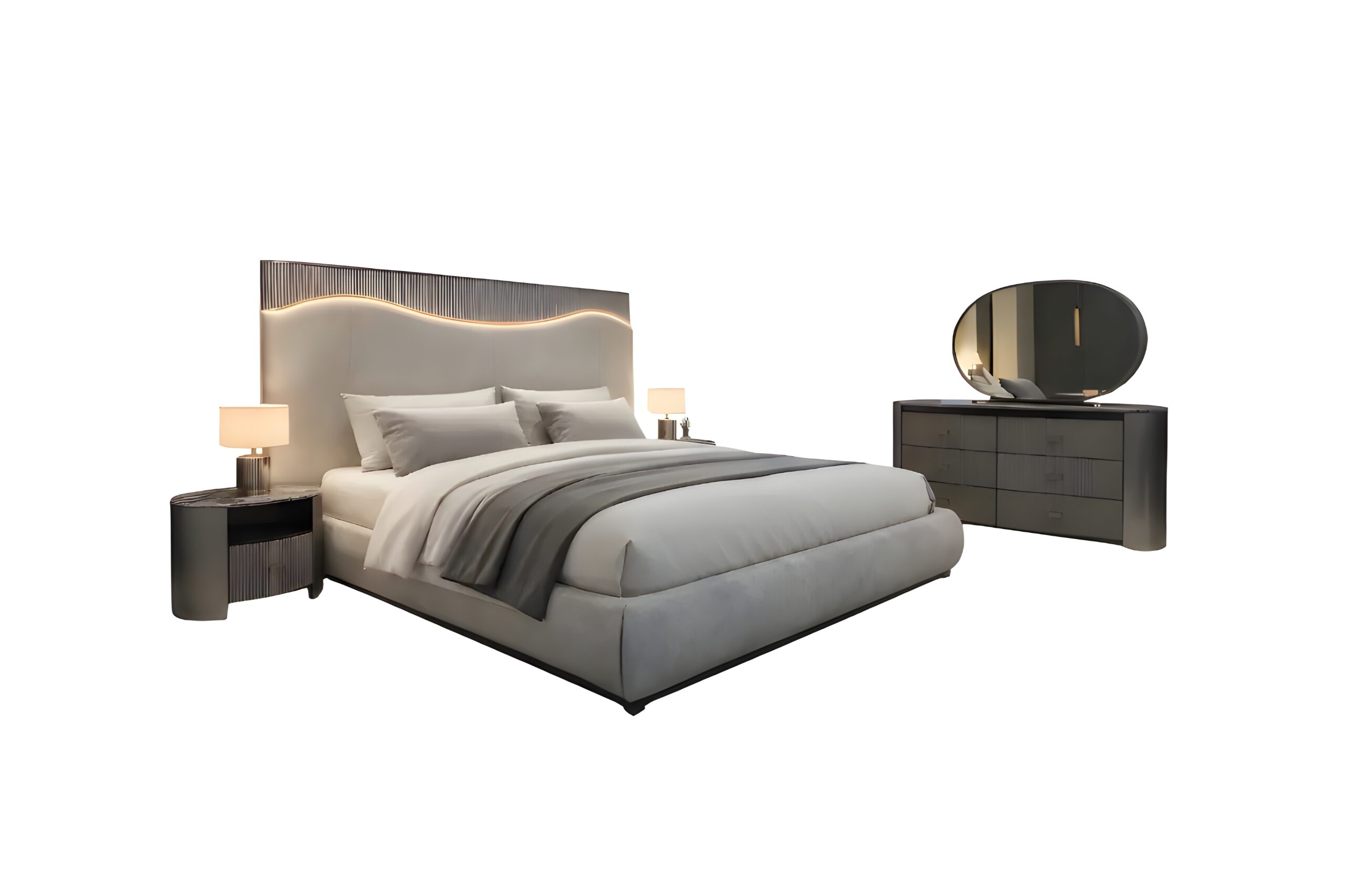 Transform your bedroom with the Atlas Fabric Bed Frame, a perfect combination of modern design and everyday comfort. Designed for contemporary Australian homes, this stylish bed frame features a beautifully upholstered fabric headboard with soft curves and subtle lighting accents that create a warm and relaxing atmosphere.