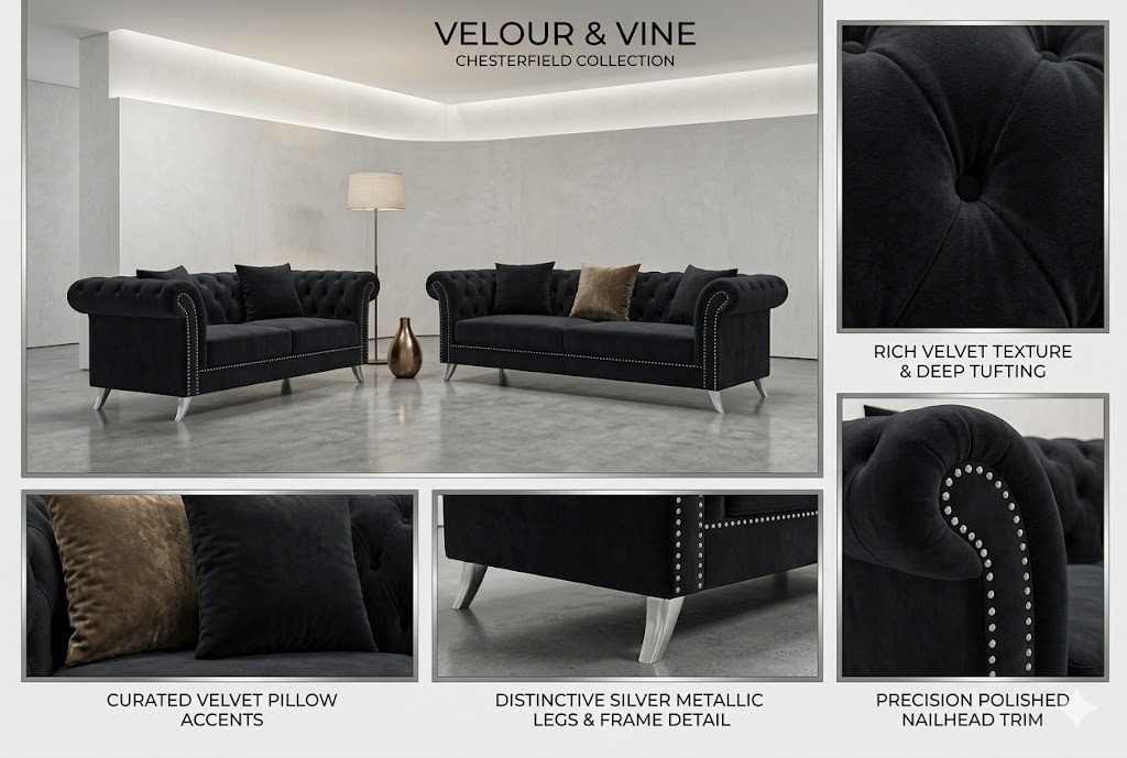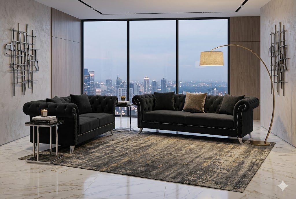 Transform your living area with the Berton Velvet Sofa, a stunning blend of classic Chesterfield design and modern luxury. Specifically curated for elegant Australian homes, this sofa features a premium velvet upholstery with deep button tufting and sophisticated stud detailing that adds a touch of glamour to any room.