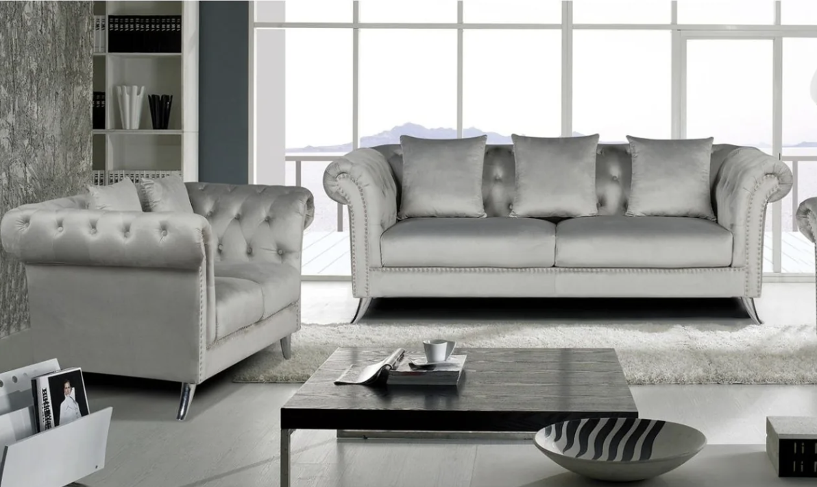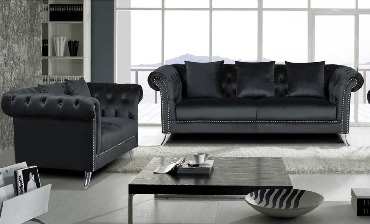 Italian Velvet Fabric, Modern Elegant Design, Metal Legs Framing, Removable Seat Cushion, Button Tufted