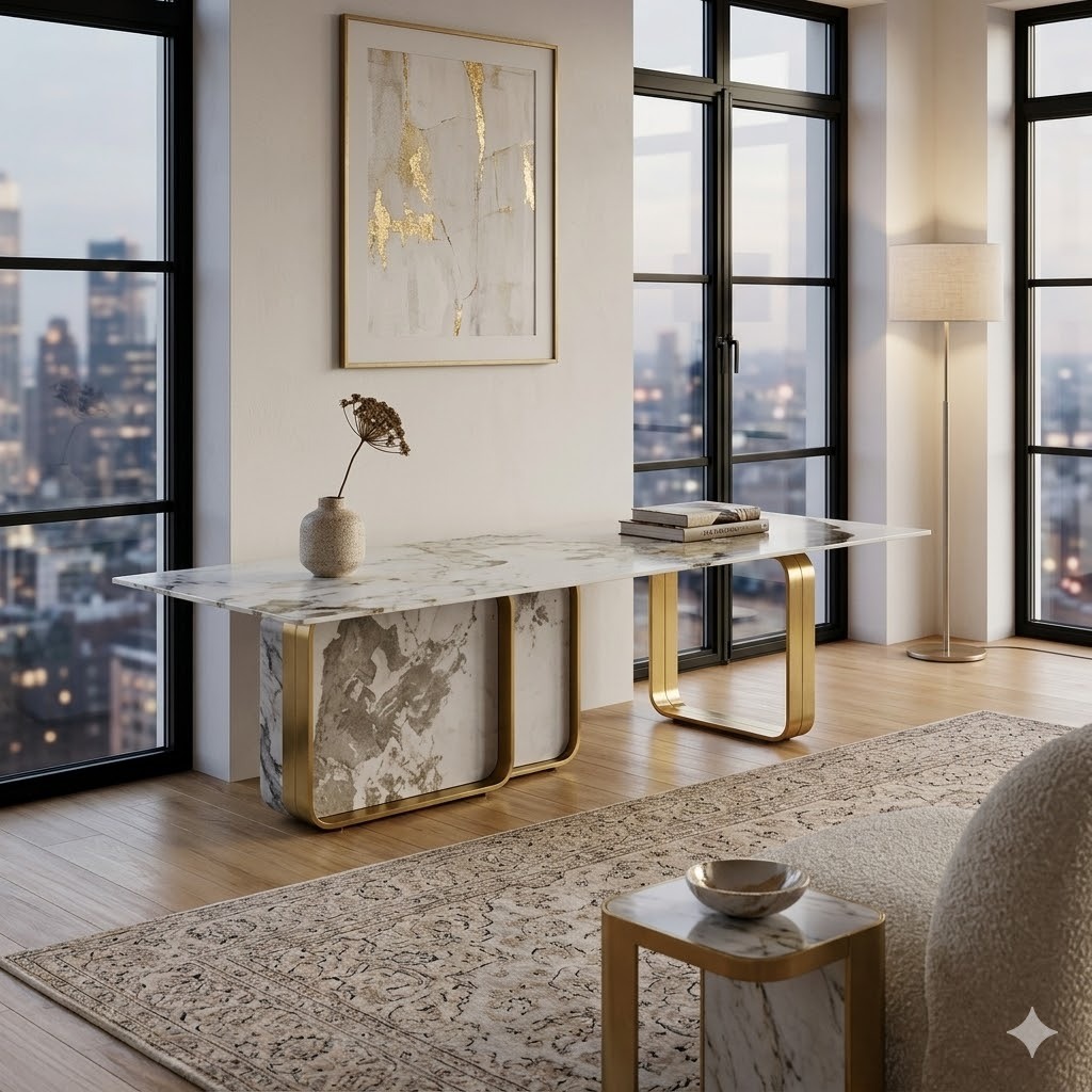 Casa Luxury Marble Dining Table – Gold Accents