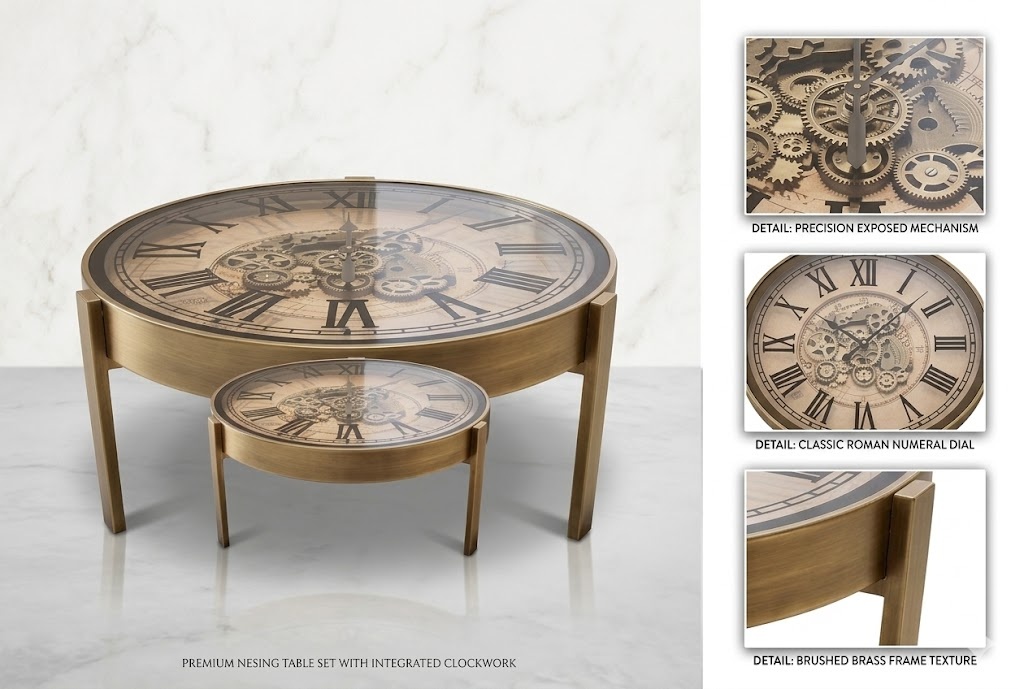Add a touch of elegance and timeless industrial charm to your space with this stunning Chicago coffee table. Designed with a vintage-inspired clock face and a sleek antique brass finish, it captures the energy of classic mechanical design—symbolizing history, precision, and unique style. Perfect for modern homes and sophisticated office decor.