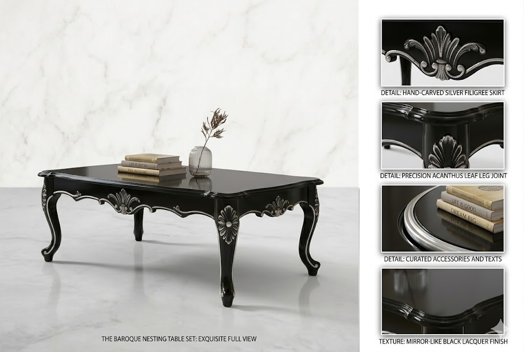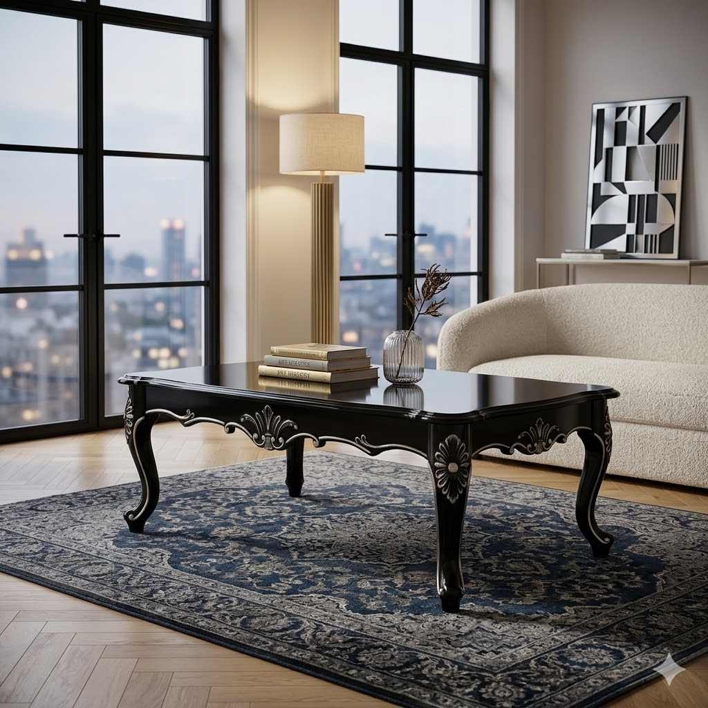 Add a touch of elegance and timeless charm to your living space with this stunning French Provincial coffee table. Designed with ornate hand-carved detailing and a sleek gloss black finish, it captures the essence of classic European luxury—symbolizing grace, heritage, and refined taste. Perfect for traditional homes and sophisticated lounge decor.