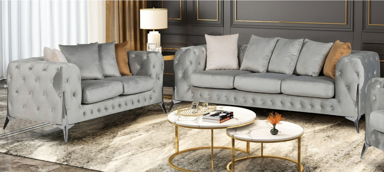 Velvet Fabric, Modern Design, Exterior Metal, Removable Seat Cushion and Button Tufted