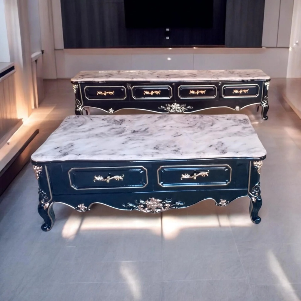 TIMBER BASE WITH DRAWERS WITH MARBLE ON TOP