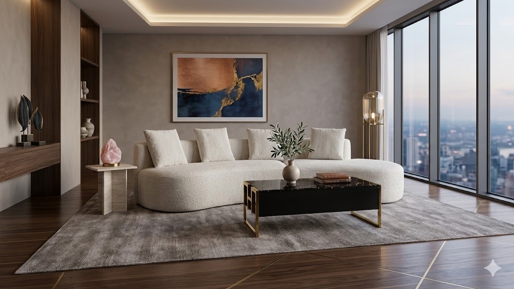 Premium textured fabric suite with a soft-touch, modern designer look.