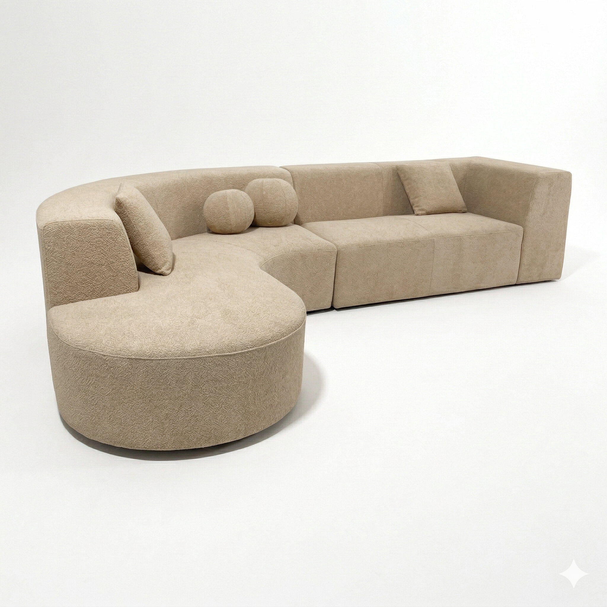 Contemporary curved design with decorative cushions included