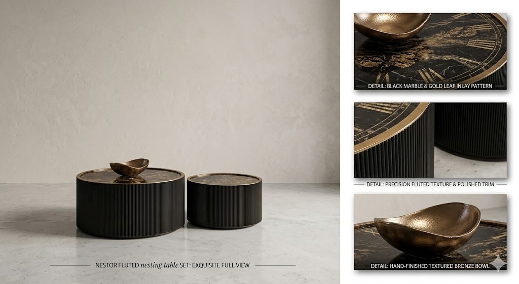 Add a touch of elegance and timeless industrial charm to your space with these stunning Pittsburgh nesting tables. Designed with vintage-inspired clock faces and a sleek black ribbed exterior, they capture the energy of classic mechanical design—symbolizing history, precision, and unique style. Perfect for modern homes and sophisticated office décor.