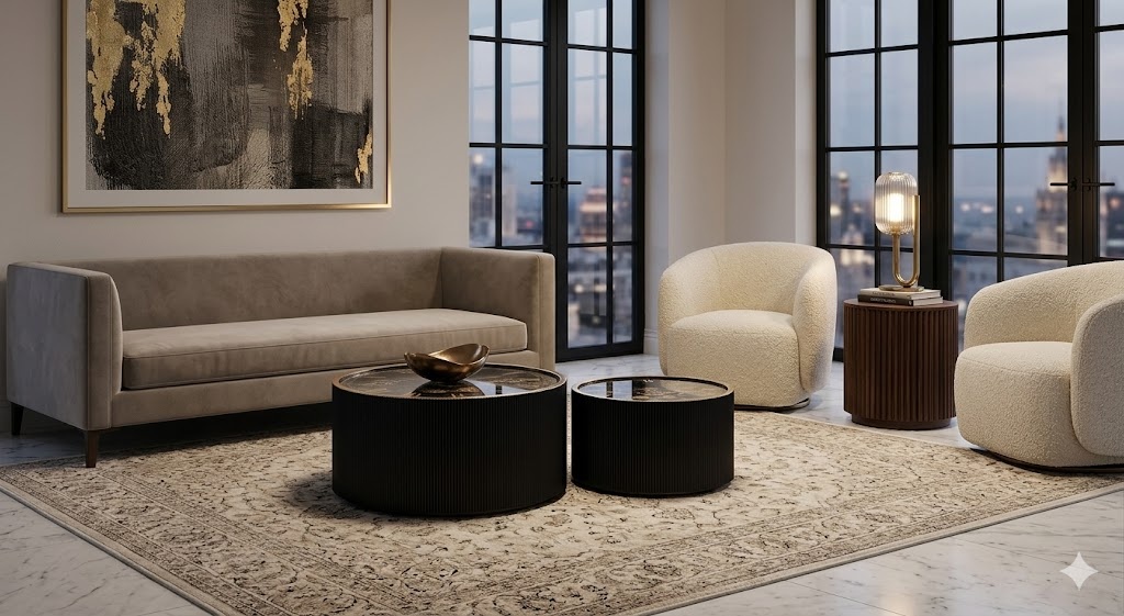 Pittsburgh Clock Face Nesting Coffee Tables – Black & Gold
