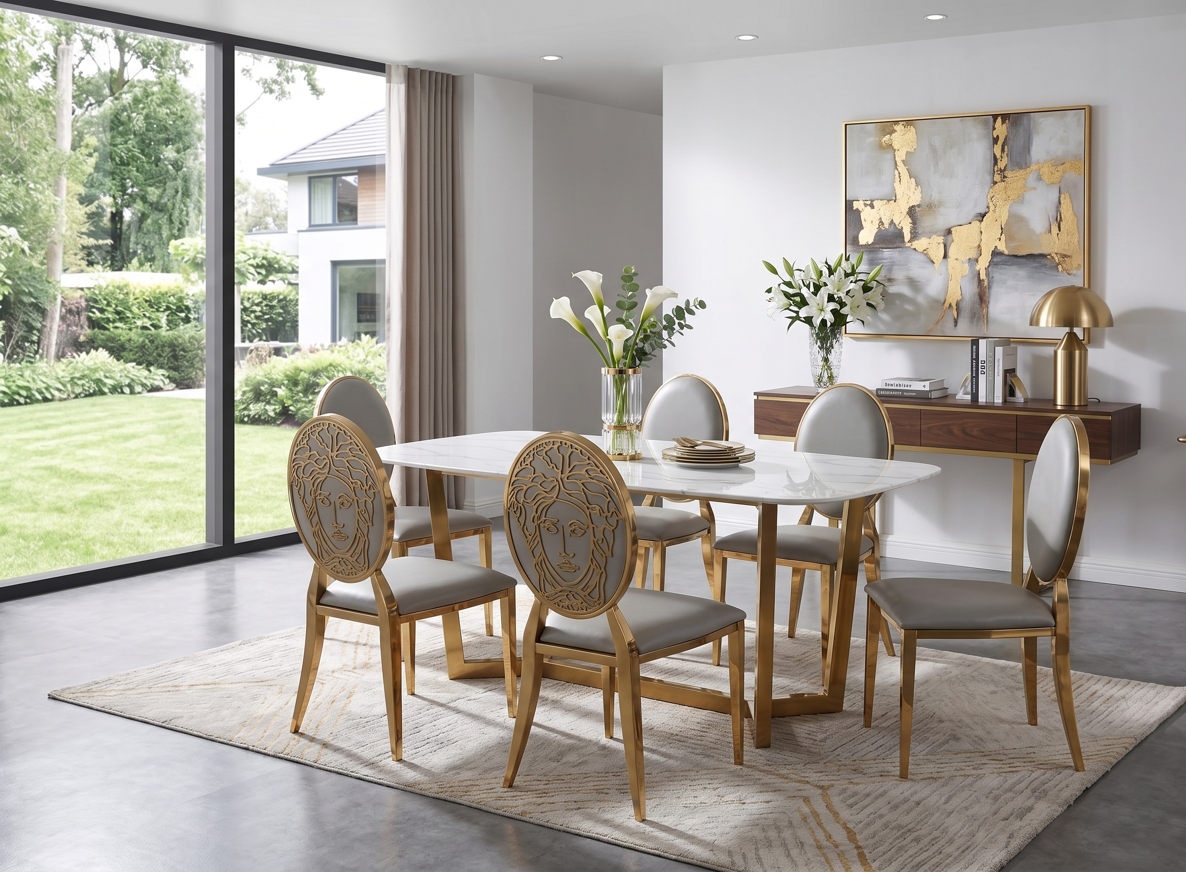 The spacious marble top provides ample room for serving dishes, décor, and everyday use.