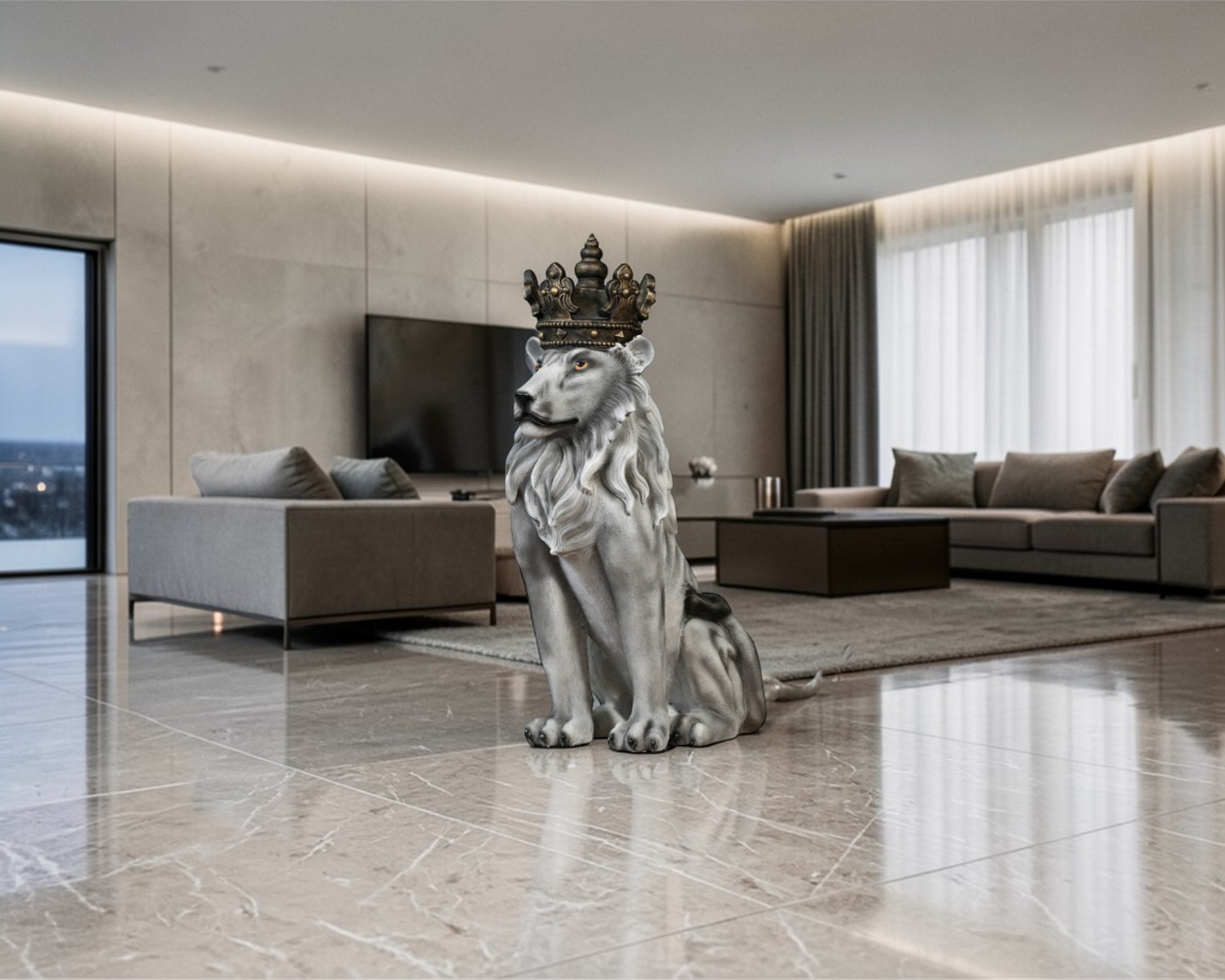 Make a bold statement in your home with this majestic lion sculpture featuring a royal crown, designed to bring luxury, strength, and elegance to any space. Perfect for living rooms, entryways, offices, or showrooms, this unique piece instantly becomes the focal point of your décor.