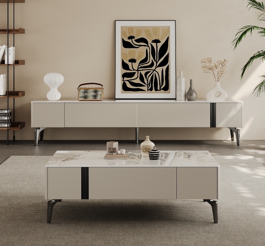 MDF with veneer painting+steel+sintered stone